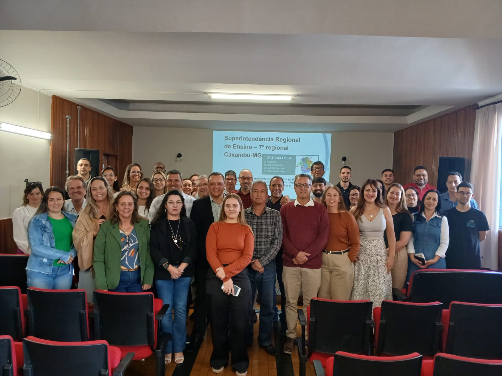 Já no dia 27/08, pela manhã, no auditório cedido pela EE Ruth Martins de Almeida de Caxambu, o Superintendente juntamente com as equipes da DIRE e DAFI prestaram informações sobre a mobilização do SAEB e as ações que devem acontecer nas redes até o mês de outubro. Além disso, a Diretoria Financeira trouxe importantes informações sobre os Convênios com a rede municipal.