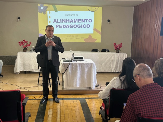 No dia 26/08, o Superintendente Alfredo Carnevalli Motta e a Diretora Educacional Rosane Elisa Bortone realizaram, para todos os servidores da Superintendência, o repasse do Alinhamento Pedagógico, ocorrido na SEE MG, com a presença do novo Secretário de Estado de Educação, Rossieli Soares.